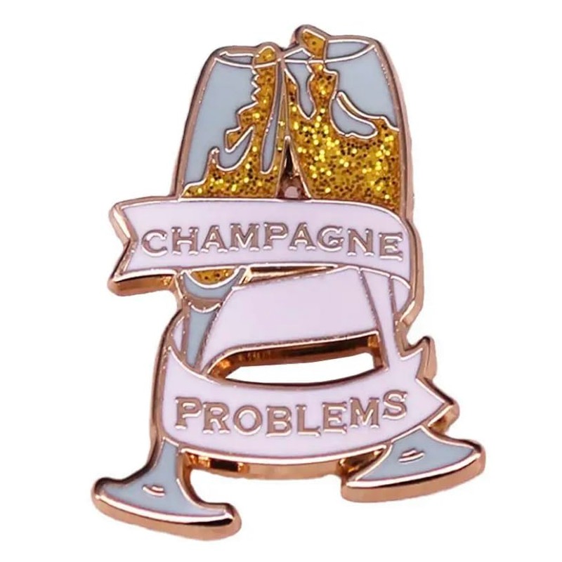 Champagne Problems Pin, Champagne Glasses Pin, 1.25 Inches Tall