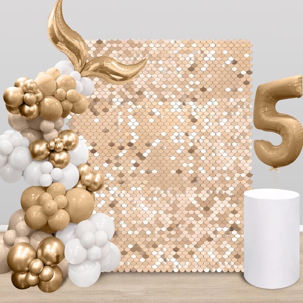 Champagne Shimmer Wall Backdrop 6ftx4ft Photo Backdrop Sequin Wall Panel Backdrop for Birthday Wedding Engagement Mermaid Wall Disco Backdrop Decoration