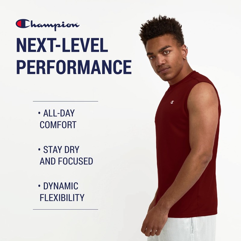 - MENS MUSCLE SHIRTS: These are great Champion workout shirts for men, not only are they great for the gym but also great for running, basketball, and for a casual day at the beach. These are Champion sleeveless t shirts so they are perfect for hot summer weather.
