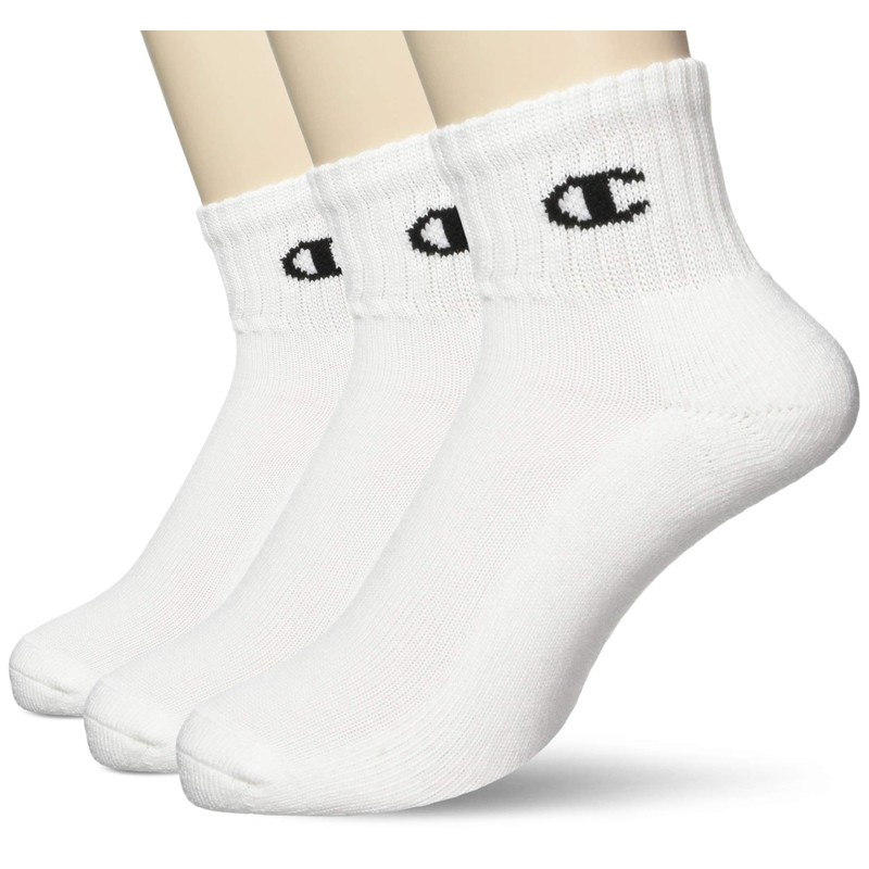 Champion CMSCR203 Men's Short Socks (3 Pairs), One Point Logo, Quarter Length Socks, 3P, white