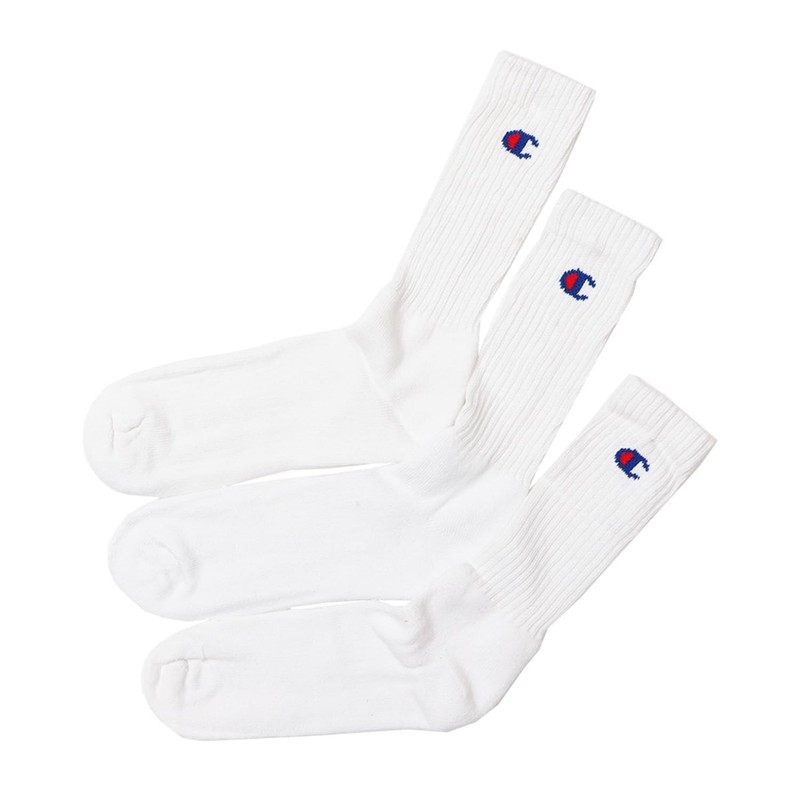 Champion CMSCY001 Men's High Socks, Plain Socks, 3 Pairs Set, Full Pile, One Point Logo, Full Length Socks, white