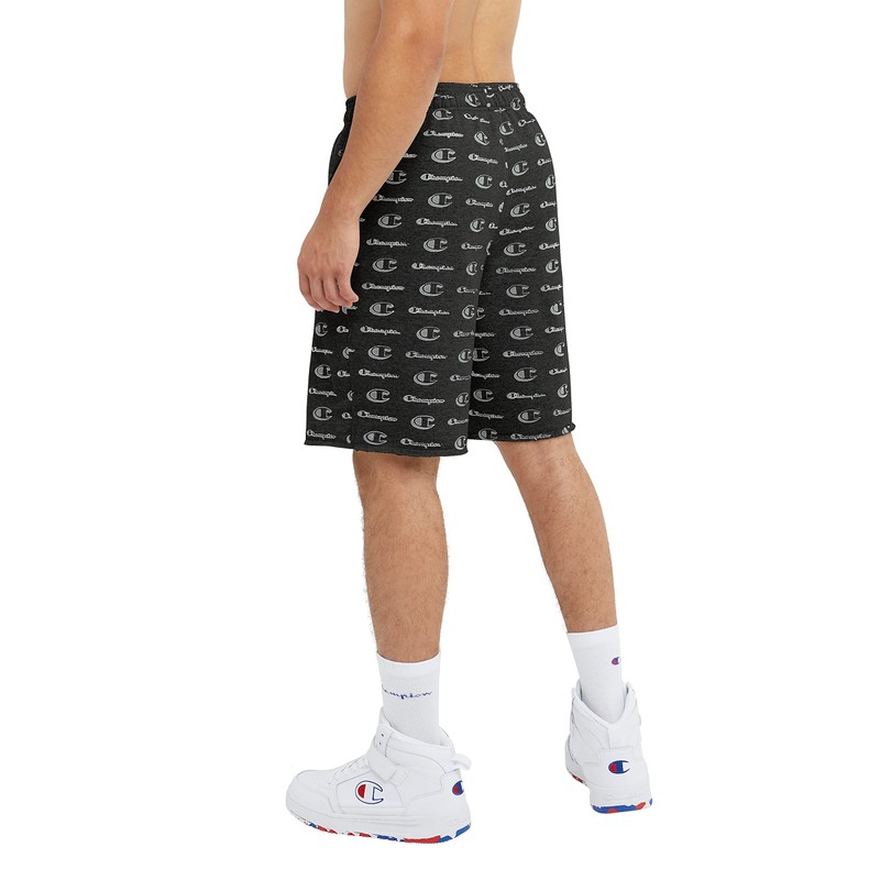 Champion Men's 10" Powerblend Short (Retired Colors), Big C Little Script Black, Large