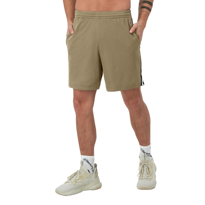 Champion Men's Shorts, Lightweight Attack Shorts, Men's Mesh Shorts with Pockets, 7, Soft Suede C Patch Logo, Medium