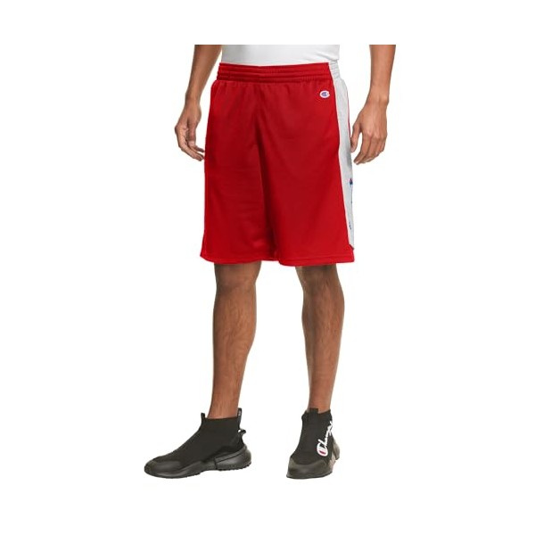 Champion Mens Mesh Basketball Shorts, Sports For Men, Athletic 10", Scarlet Vertical Script, XX-Large US