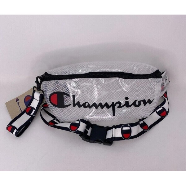 Champion NWT CHAMPION Sling Waist Fanny Pack Travel Adjustable Script LOGO Clear See Thru