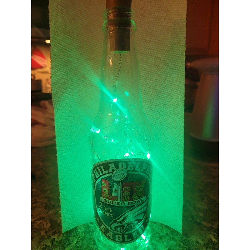 Celebrate your team's Super Bowl LIX victory with this exclusive Philadelphia Eagles Champion lighted collectible bottles with LED CORK LIGHTS.These bottles are the perfect addition to any fan's collection and are designed to light up every time your team scores a touchdown. Show off your pride for the Eagles and the NFL with these limited-edition collectibles. Whether you're a die-hard fan or just looking for a unique piece of memorabilia, these bottles are a must-have. Get yours now and add some excitement to your collection!