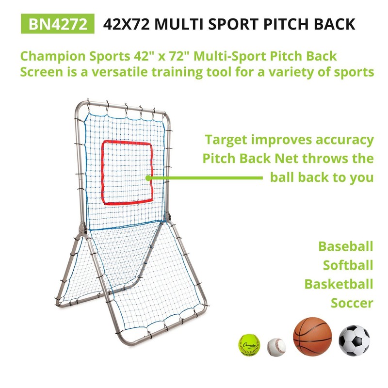 - Multi-Sport Equipment Netting: Champion Sports Pitch-Back Rebound Nets Are Ideal for a Variety of Sports Training, Including Baseball, Softball, Lax, Soccer, Football, Volleyball, Basketball or Tennis