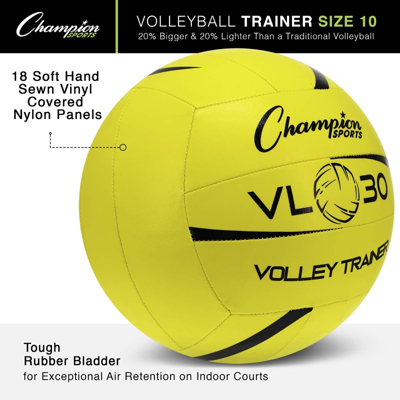 - FROM PRACTICE TO PLAY: Whether you’re a beginner or a pro, this Trainer Volleyball from Champion Sports is ideal for working on your form! At a larger size 10, yet more lightweight than regulation balls,you’ll be serving and spiking flawlessly in no time