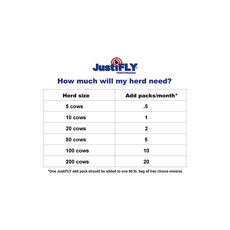 - JustiFLY Feedthrough in a convenient 360gram add-pack for use on-farm