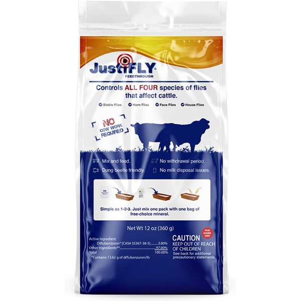 Champion USA JustiFLY Feedthrough Cattle Fly Control, Single | Non-Toxic Larvicide. Controls All Four Fly Species That Affect Cattle. Over 50 Million Head Treated