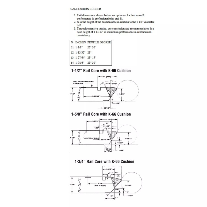 Championship Tour Edition K66 Pool Table Rail Rubber Cushions 43”, Set of 6