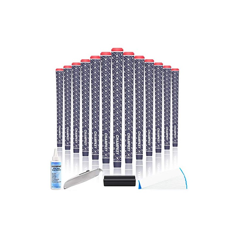 CHAMPKEY X Rubber Golf Grips Set of 13 (5 Oz Solvent,Hook Blade,15 Tapes & Vise Clamp Available)-Choose Between 13 Grips & All Repair Kits and 13 Grips & 15 Tapes (Blue(Repair Kits), Midsize)