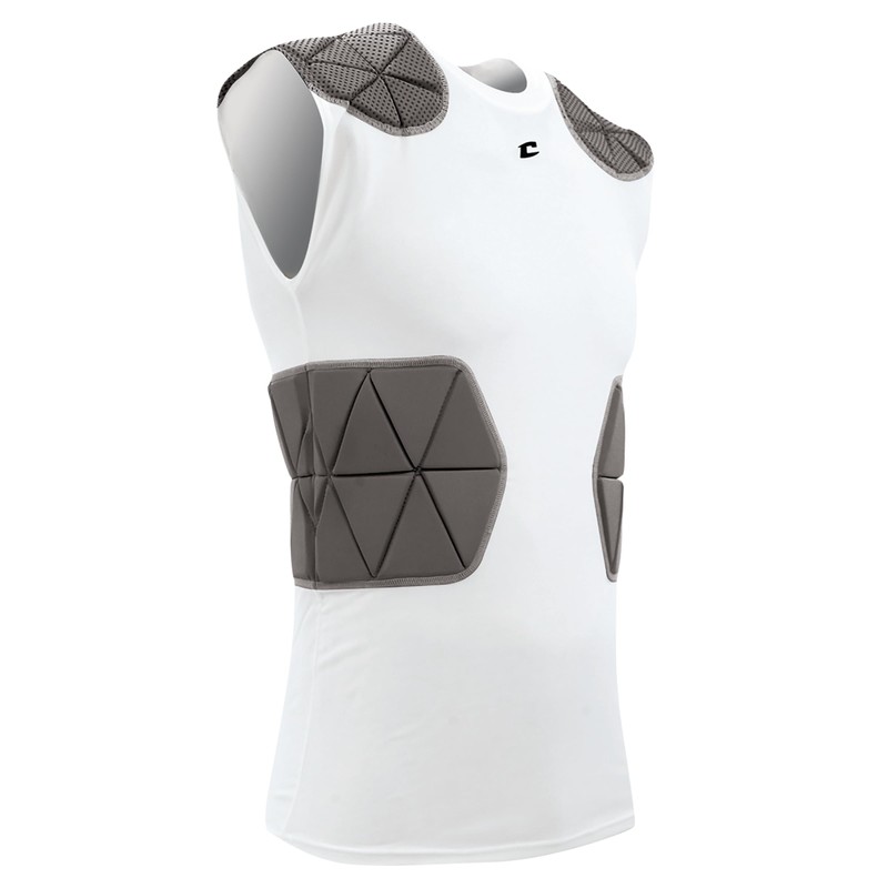 Champro Men's Standard Tri-Flex Compression Shirt with Integrated Pads Cushion System, White, Grey, Small