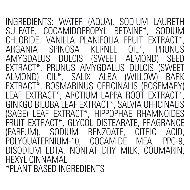 - Champú reparador formulado con aceite de argán 100% natural de Marruecos, almendras dulces prensadas en frío y vainilla polinizada a mano