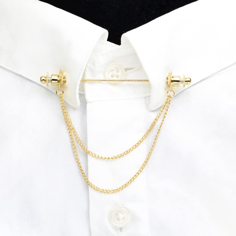 Chamvino 2PCS men's and women's shirt chain collar pins Gold Metal Double Chain Collar Pin Shirt Collar Brooch Stick