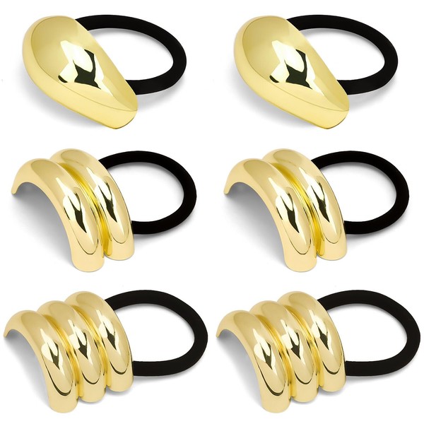 Chanaco 6Pcs Metal Hair Tie Gold Hair Cuffs for Women Geometric Gold Hair Ties Pony Tail Hair Cuff for Thick Hair Elastic Hair Ties Ponytail Cuff Hair Accessories No-damage