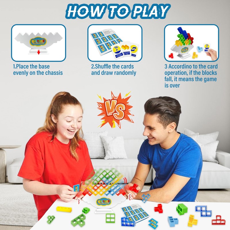 - How to play: 1. Challenge yourself in single player mode to improve your patience and balance skills. 2. Use the draw cards to take the next step. This tetra tower balance game promotes cognitive skills and creative thinking and provides endless entertainment for children and adults alike.