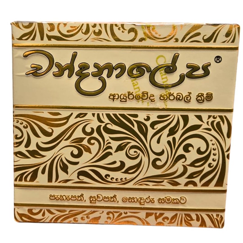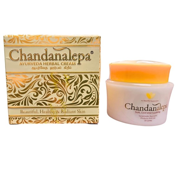 ntroducing the New Improved Chandanalepa Herbal Cream, a fusion of tradition and innovation, crafted to enhance your skin's natural beauty. Infused with the essence and fragrance of Sandalwood, along with pure Sandalwood Oil, this cream offers a luxurious experience with every application. Formulated with a blend of indigenous Ayurvedic ingredients such as Venivel (Yellow vine), Kokun Bark, Suwanda Kottan, Indian Turmeric, and Velmadata, this cream delivers a unique combination of benefits for your skin. It acts as a shield against harsh environmental elements like sunlight and extreme cold, protecting your skin while maintaining its health and vitality. Say goodbye to dryness and hello to radiant skin as this cream effectively moisturizes and nourishes, leaving your skin feeling soft, supple, and rejuvenated. Bid farewell to skin concerns such as mycoses, pimples, blackheads, whiteheads, spots, discoloration, and darkening, as the powerful blend of ingredients works to address these issues, revealing a clearer and more even complexion. Experience the transformative power of Chandanalepa Herbal Cream as it bestows upon you a golden complexion and a healthy, beautiful glow. Embrace the tradition of Ayurveda with this rejuvenating cream, and unveil skin that radiates beauty from within.