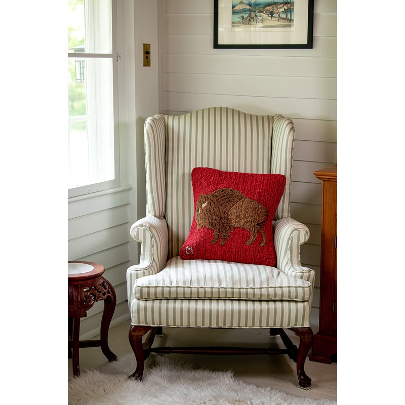 Chandler 4 Corners Artist-Designed Plains Buffalo Hand-Hooked Wool Decorative Throw Pillow (18 IN x 18 IN) Wildlife Pillow for Couches & Beds - Low Maintenance Nature, Wilderness Buffalo Square Pillow