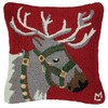 Chandler 4 Corners Artist-Designed Reindeer Hand-Hooked Wool Decorative Throw Pillow (18 in x 18 in) Christmas Pillow for Couches & Beds - Easy Care & Low Maintenance - Winter & Holiday Home Décor