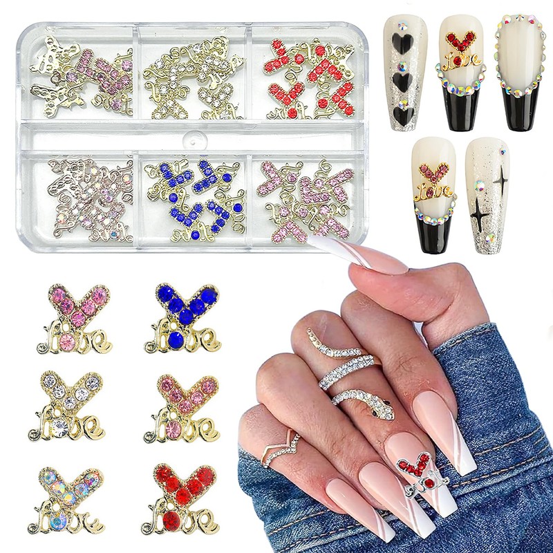 - 【Alloy and Rhinestones Design】This boxed Valentine's Day nail supplies set is made of a combination of alloy and crystal rhinestones. Crystal rhinestones are inlaid on the heart-shaped alloy, and paired with the word love. When used as a nail decoration, it can better match the mood of Valentine's Day and express love to the person you love.