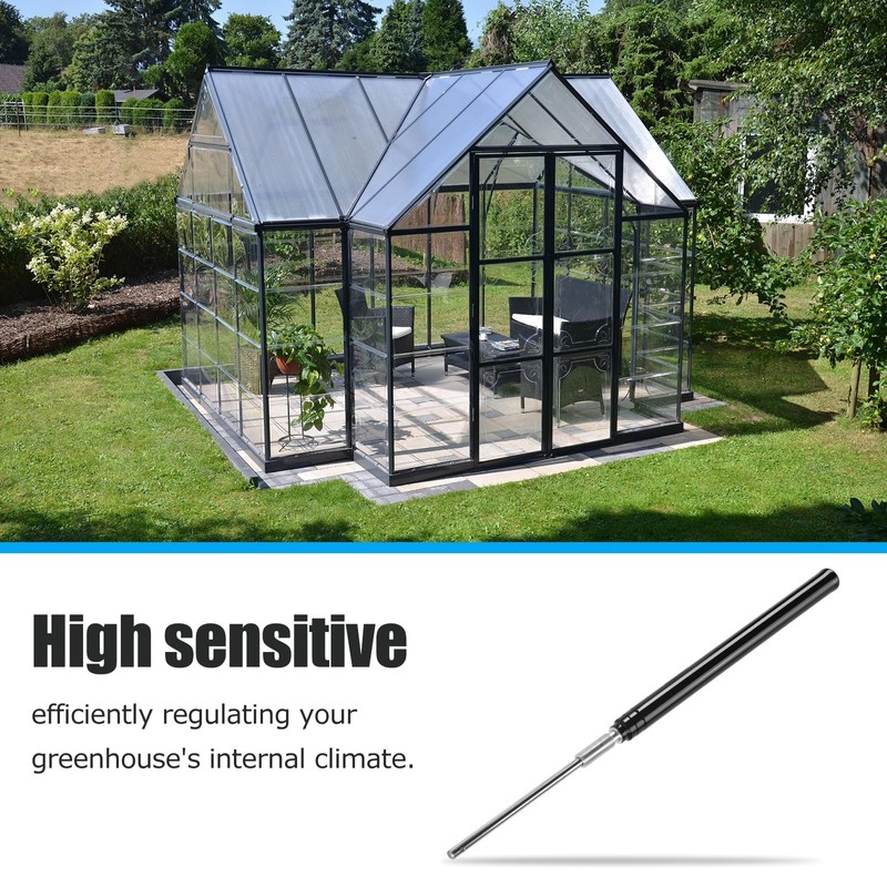 - Temperature Sensitive Ventilation : Our automatic window opener responds to temperature changes, efficiently regulating your greenhouse's internal climate. As the temperature rises, the gas-filled cylinder expands, gently pushing the window open. Once the temperature cools down, the spring mechanism closes the window smoothly