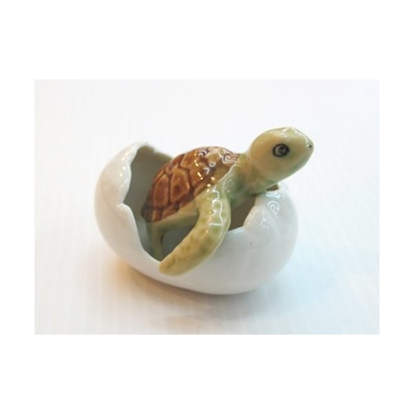 ChangThai Design ½" Long Baby Turtle In Egg Looking Up - Tortoise Terrapin Figurine Miniature Tiny Hand Made Painted Ceramic Porcelain Clay Pottery Collectible Chelonian Reptile Animal Decor Souvenirs