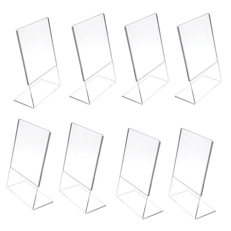 Changyeah Acrylic Sign Holders, A6 Advertising Stand/L Stand, Display Slant Acrylic Sign Holder, A6 Ideal for Cafes, Restaurants, Promotions, Exhibitions, Offices, Crystal Clear Acrylic, Pack of 8