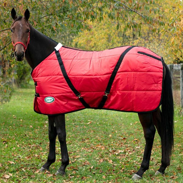 Country Pride Sentinel Channel Quilt Horse Stable Blanket, Midweight Open Front, 420D Nylon Outer Shell, 250g Poly-Fill Insulation, Wither Protection, Adjustable Leg Straps, Bias Surcingle (70,Red)