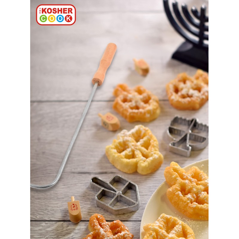 Chanukah Fritlach Rosette Maker - Stainless Steel Rosette Iron Set With Handle - 3 Piece Hanukkah Rosette Set - Dreidel and Menorah Rosette Mold- The Kosher Cook