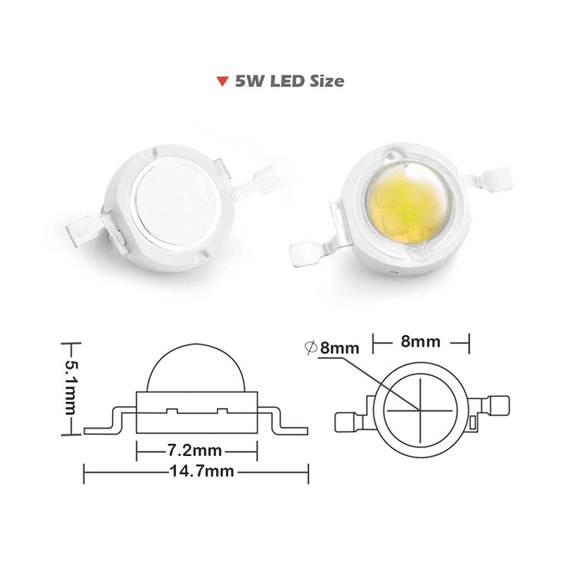 - 5Watt / Cold White / 10000k - 15000k / 500 - 600LM / 45mil chips / 120 - 140 degree Light Emitting Angle Lightbulbs