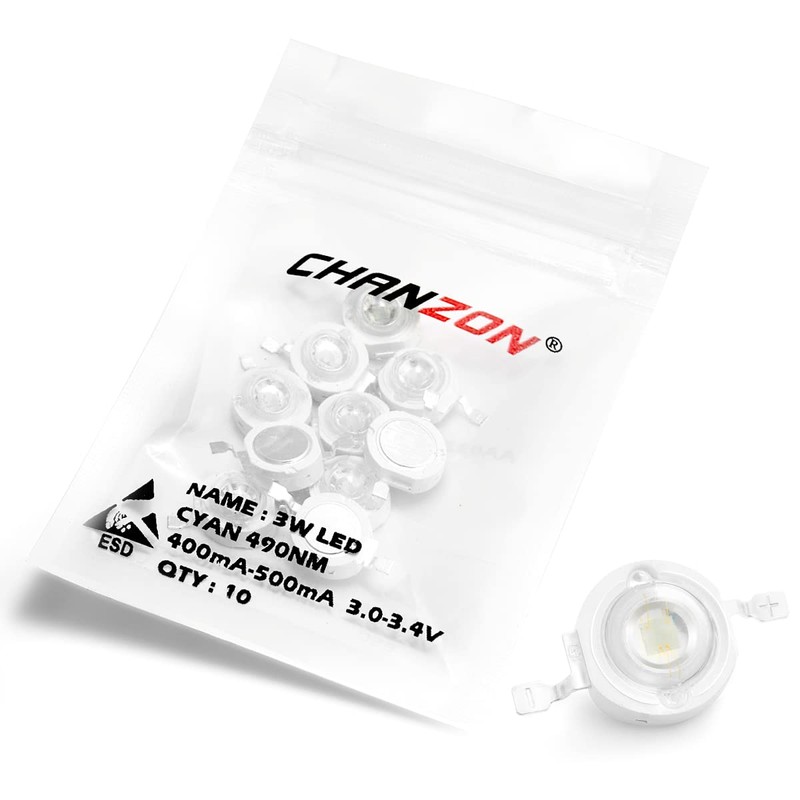 CHANZON 10 pcs High Power Led Chip on Board 3W Cyan (490nm / 400mA - 500mA / DC 3V - 3.4V / 3 Watt) Super Bright Intensity SMD COB Light Emitter Components Diode 3 W Bulb Lamp Beads DIY Lighting