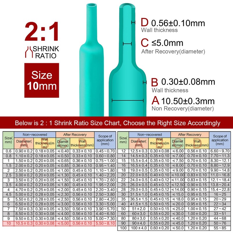 - 2:1 Shrink Ratio: Perfectly tailored for 3/8" (10 mm) diameter applications and 80 feet long, our Chanzon heat shrink tubing is designed to shrink to half its original diameter, providing a secure and tight seal.