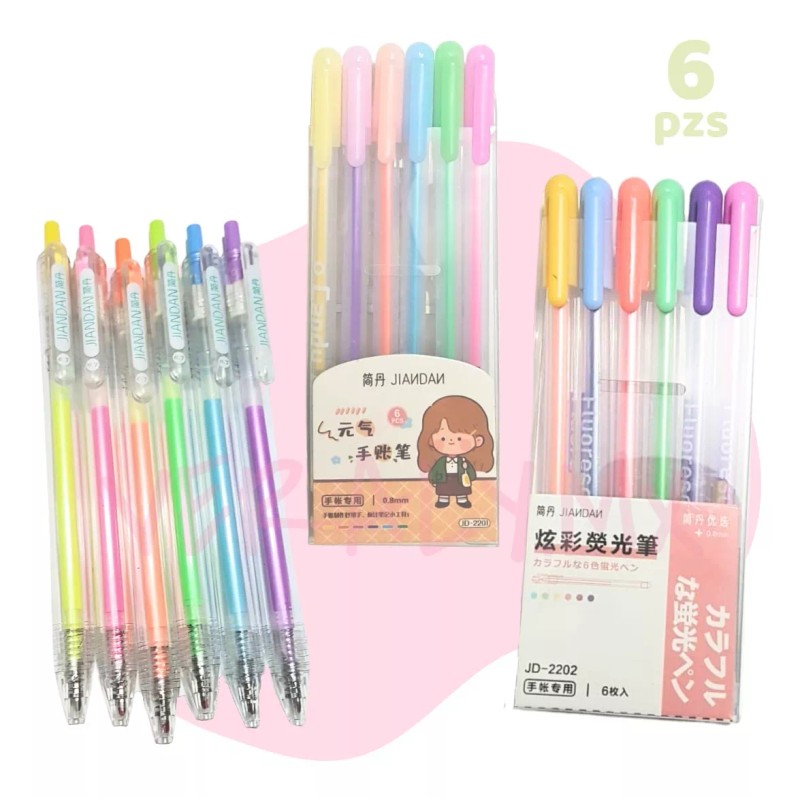 El set de plumas de gel de colores muy brillantes y coloridos es perfecto para aquellos que desean agregar un toque vibrante y llamativo a sus apuntes y notas de clase. Este paquete contiene seis plumas de diferentes colores, lo que te permite crear una variedad de combinaciones y diseños únicos en tus cuadernos.