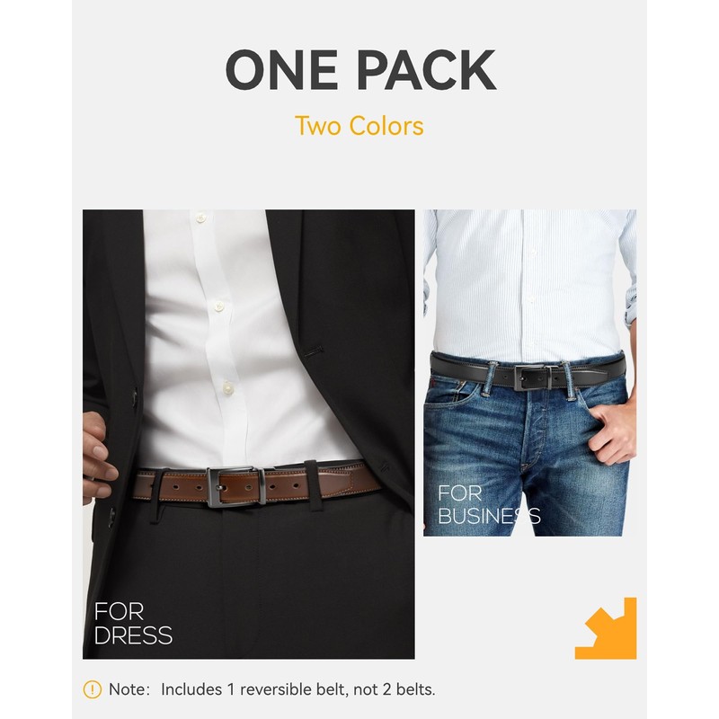 - 1 BELT, 2 STYLES: Pay for one but get two colors in one leather belt. The Classic design of the mens belts leather is perfect to be paired with your favorite trousers, jeans and oxford shoes.