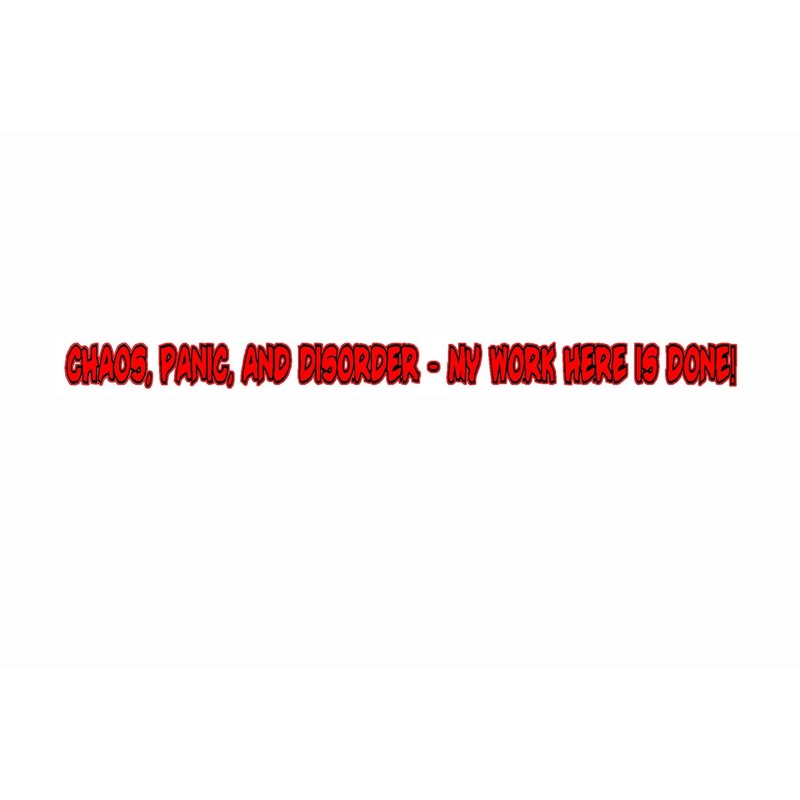 Chaos, Panic & Disorder- My Work Here's Done 4x4 Off Road Car Sticker Red