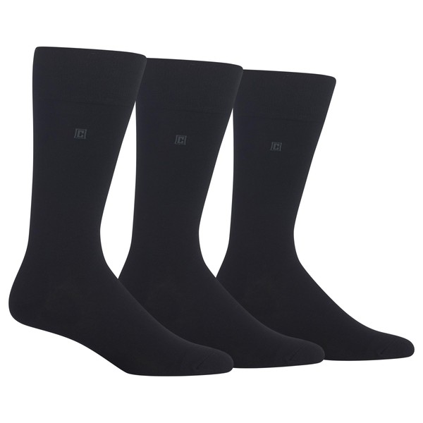 Chaps Men's Solid Crew Socks with Embroidered Logo (3 Pack), Black, Shoe 6-12/Sock Size 10-13