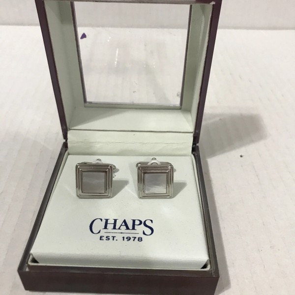 Chaps MOP Silver Tone Cufflinks Wedding Tux (LR-5-1)