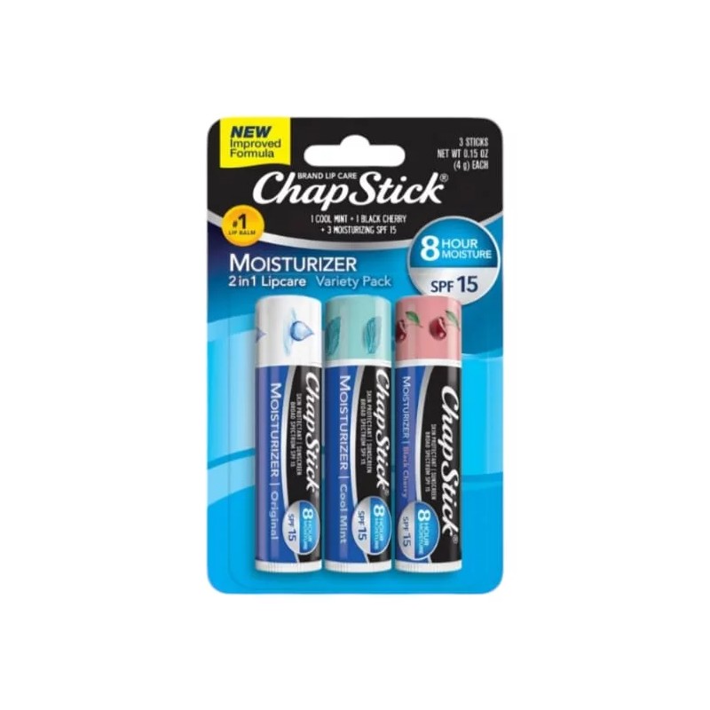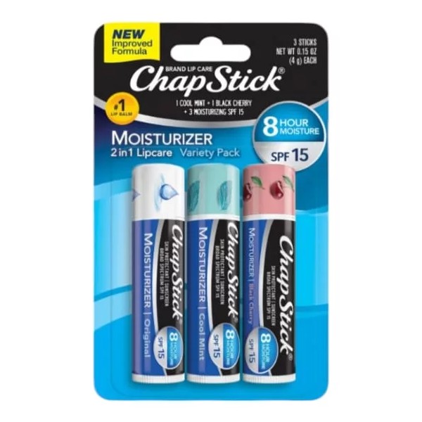 chapstick variety pack moisturizer paquete con 3 piezas cereza menta y original