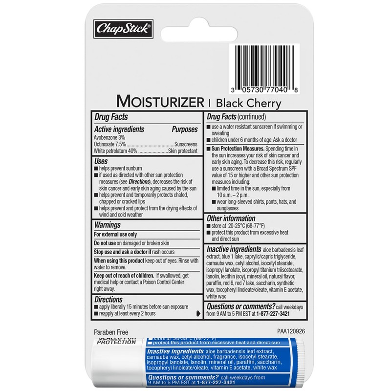 • MOISTURIZING SPF LIP BALM: With ingredients like aloe and vitamin E, the ChapStick Moisturizer 2-in-1 Lipcare SPF formulas deliver sun protection and 8 hours of hydration.