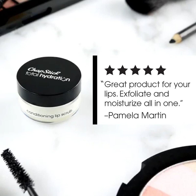 - Includes one 027-ounce jar of ChapStick Total Hydration Conditioning Lip Scrub in a sealed plastic blister card
