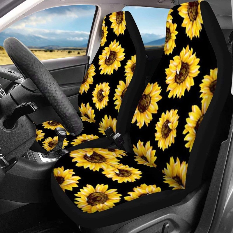 chaqlin chaqlin Daisy Autozubeh?r Komplettset 4-teilige Auto-Rcksitzbezge Damengeschenke, 2-teilige Autositzbezge + 2-teiliger Rcksitzschutz Split-Sitzbezug Schalensitzkissen-Schwarz