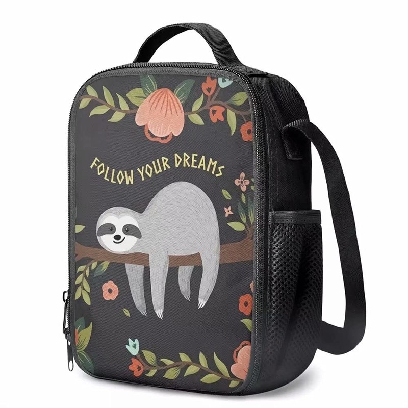 chaqlin Kids Children School Food Lunch Boxes with Adjustable Shoulder Straps,Cute Follow Your Dream Sloth Printed Lunch Bags for Boys Girls,Travel Sling Messenger Pouch