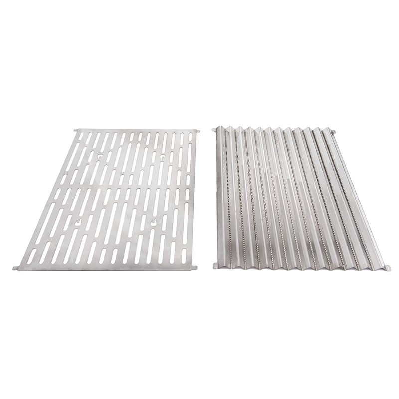 - Two-piece 13.8" x 9.8" stainless Steel toppers keep your grates clean