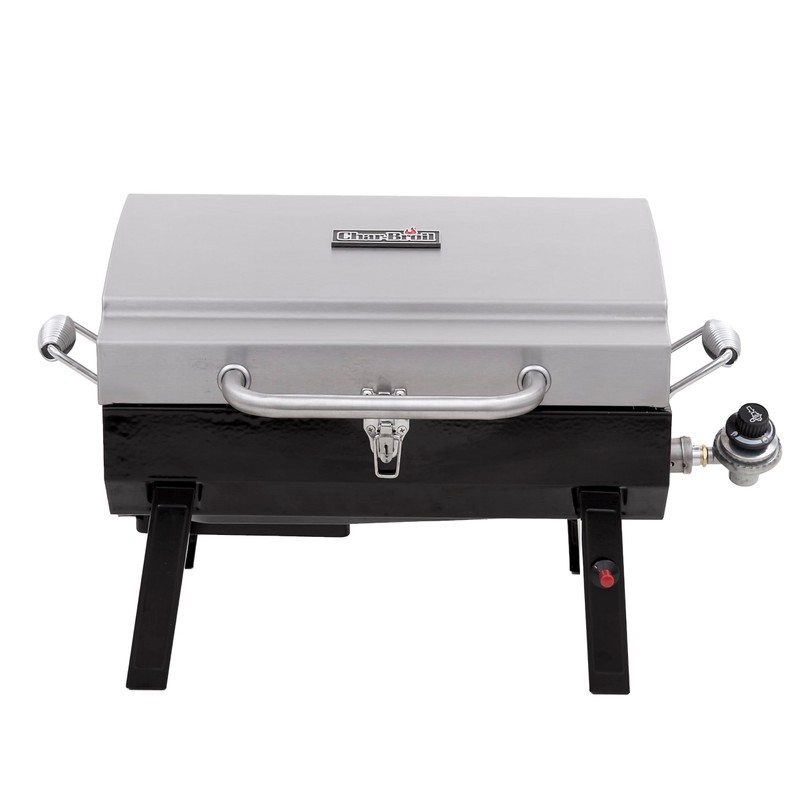 The Char-Broil stainless steel gas tabletop grill is for on-the-go, anywhere grilling. When you have limited space but want to grill, this deluxe gas tabletop is the right choice. The durable stainless steel construction helps prevent rust. The durable legs, dual stainless steel handles, and latching secure top, allow for easy portability. It has a large slide out grease tray and filtered regulator to protect the tank valve from debris. With 200 square inch of cooking area, durable stainless steel wire grates and built-in push- button igniter, it has a lot of great features for easy grilling.