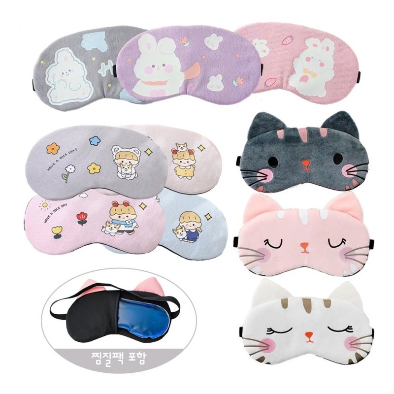 Character hot and cold compress pack, sleep eye patch, compress pack Includes Cat Cow/Purple 3ea