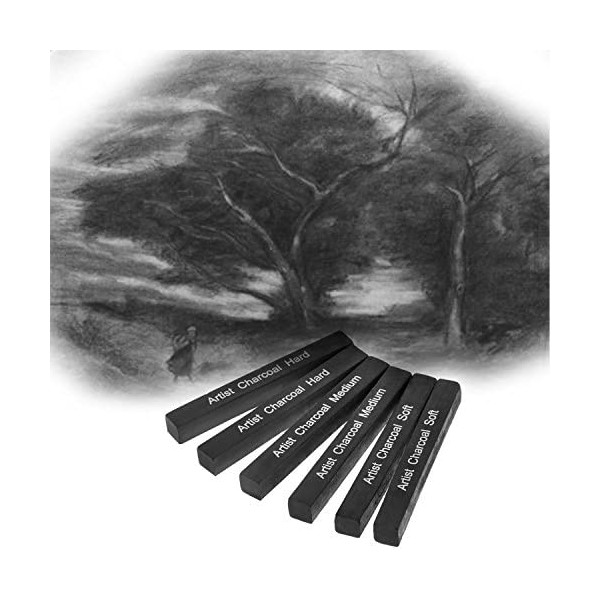 - Standards: Material: Charcoal, 6-piece stick: 2 x soft, 2 x medium, 2 x hard. Uses superior charcoal for a special texture