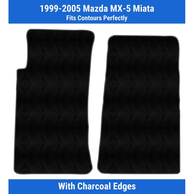 Charcoal Edge Custom Fit Front Carpet Floor Mats, Black, Compatible with Mazda MX-5 Miata 2005 2004 2003 2002 2001 2000 1999