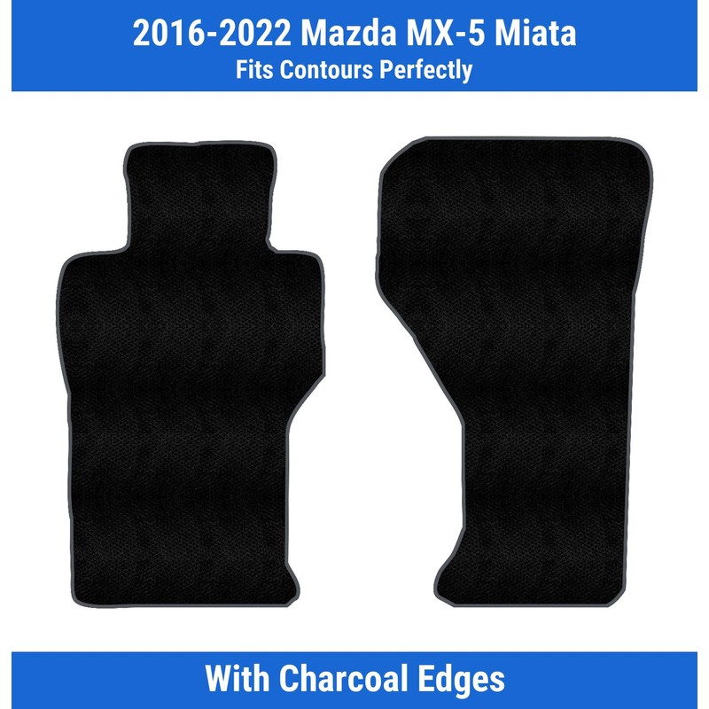 Charcoal Edge Custom Fit Front Carpet Floor Mats, Black, Compatible with Mazda MX-5 Miata 2022 2021 2020 2019 2018 2017 2016