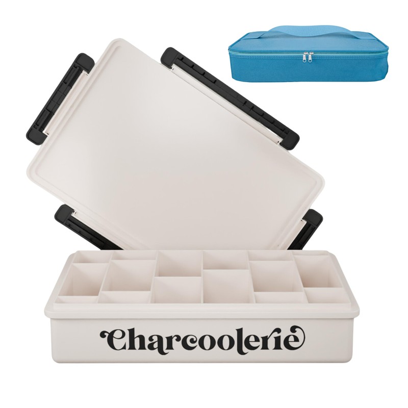 Charcoolerie Chilled Portable Travel Charcuterie Snackle Box Container with Locking Lid, includes Ice Pack, and Bonus Cooler Bag, Picnic Box Serving Tray